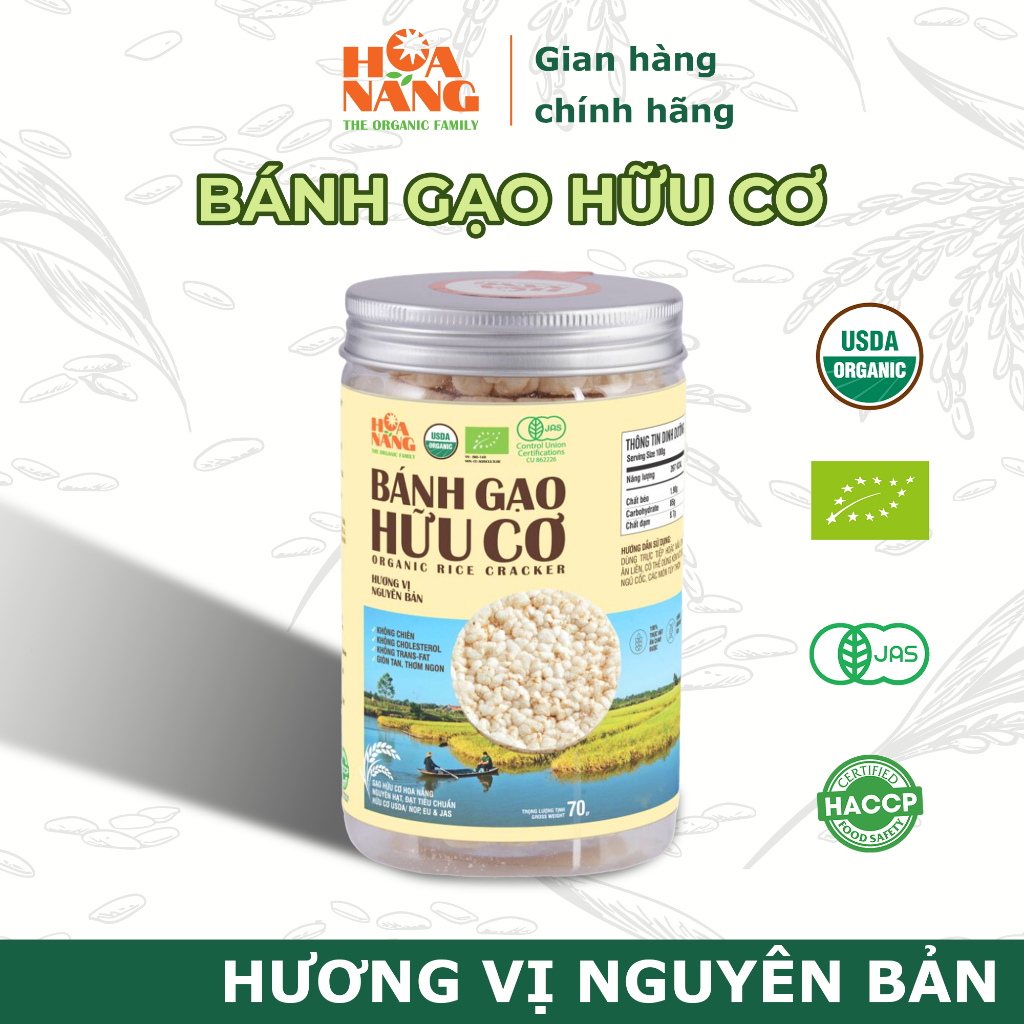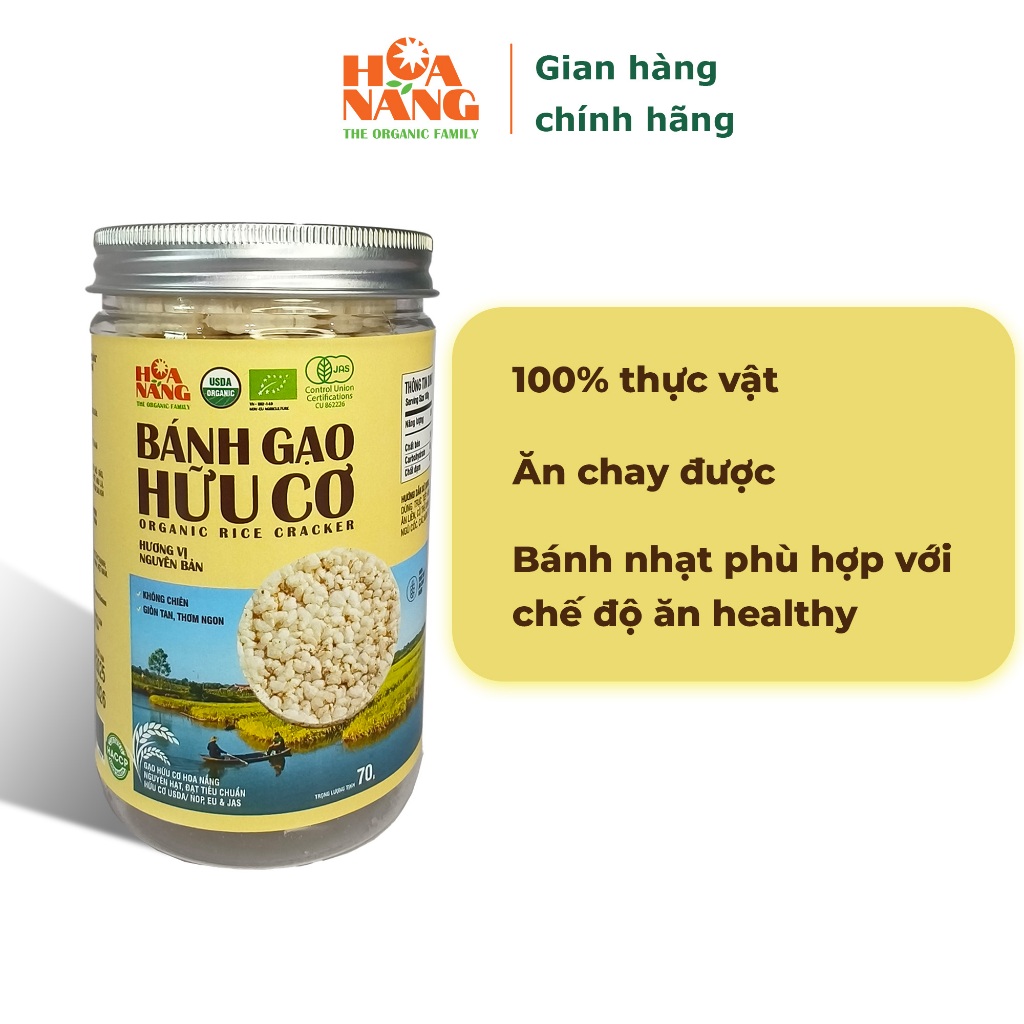{HŨ} BG VỊ NGUYÊN BẢN, Bánh gạo hữu cơ Hoa Nắng cho bé ăn dặm và cho người tập Gym, ăn kiêng vị nguyên bản dạng hũ 70gr