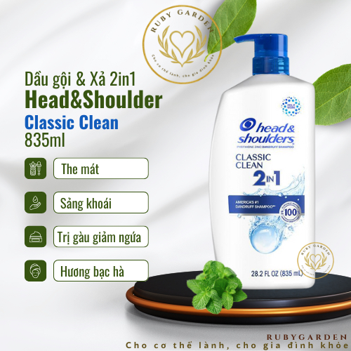 [NK Mỹ] Dầu gội và xả 2in1 Head & Shoulders 835ml Classic clean I Hạnh Nhân I Smooth&Silky - Ruby Garden