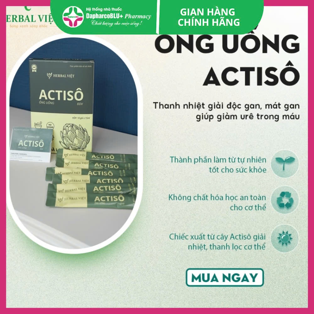 Stick Uống Actiso Herbal Việt Không Đường Hàm Lượng Actiso Lên Đến 1200mg Giải Độc Gan Mát Gan