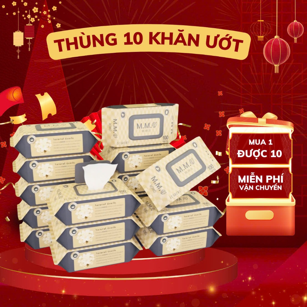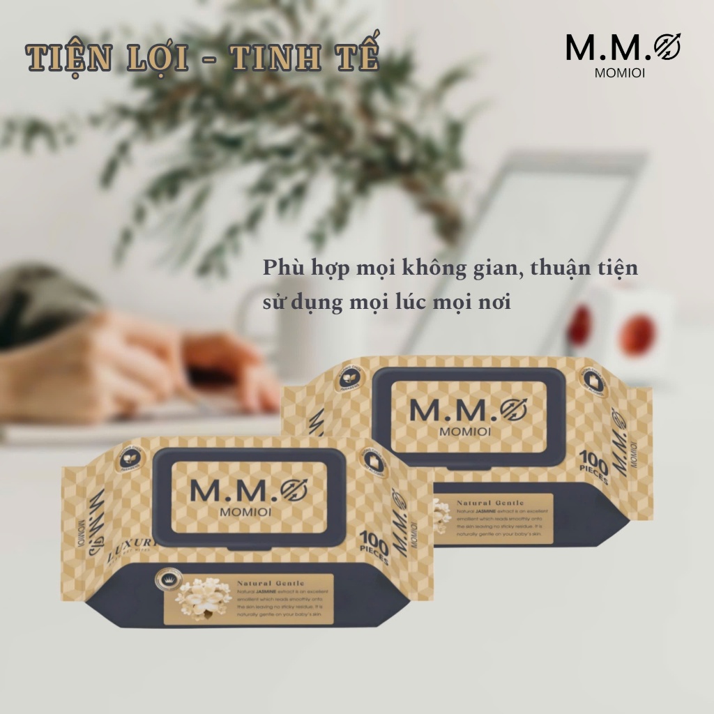 Thùng 10 gói khăn ướt MOMIOI LUXURY sợi vải tự nhiên không mùi, không hóa chất an toàn cho trẻ nhỏ