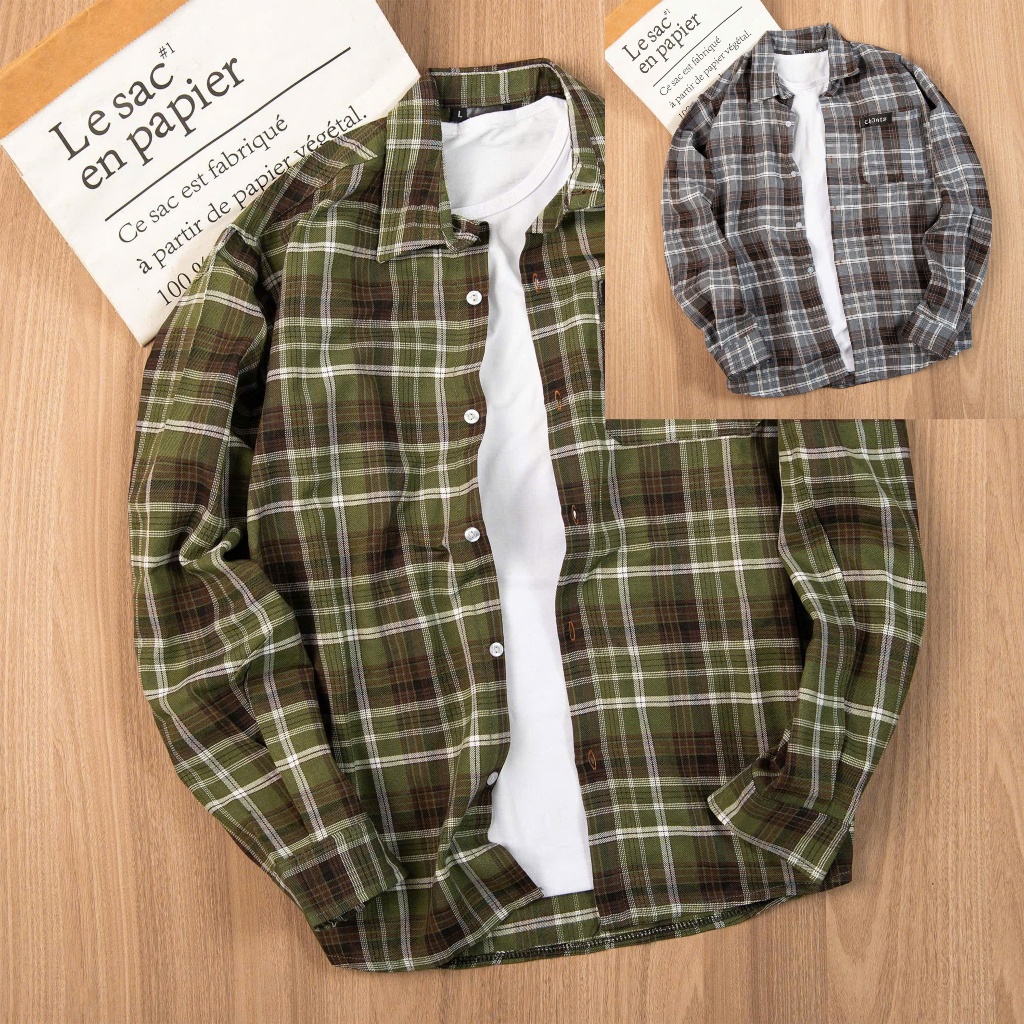 Áo Sơ Mi Flannel Mix Túi Ngực Kẻ Caro Dài Tay Nam Nữ Thơi Trang Trẻ Trung Chất Cotton Dày Dặn Thoáng Mát - Có Cổ - Mens