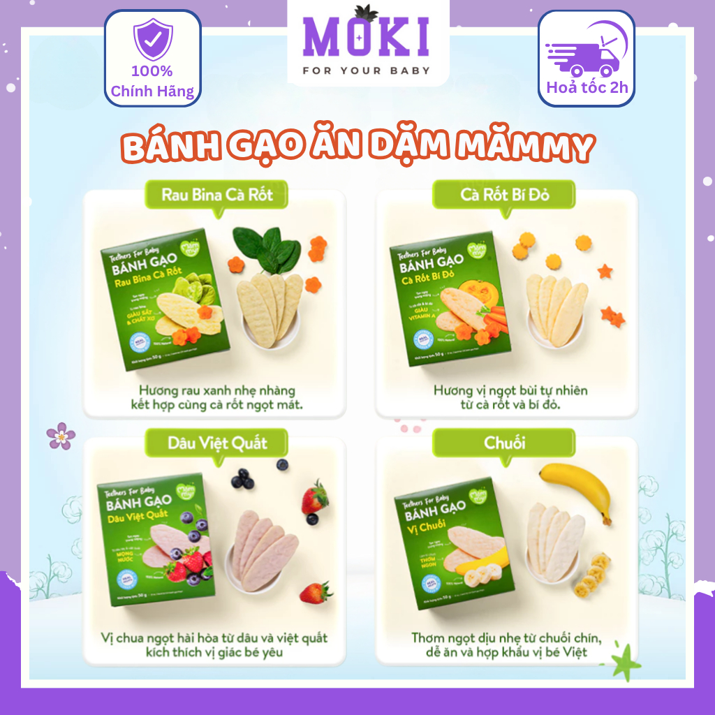 Bánh ăn dặm gạo dẹt rau củ Mămmy giúp bé tập nhai bổ sung dinh dưỡng, hỗ trợ tiêu hóa cho bé 7 tháng