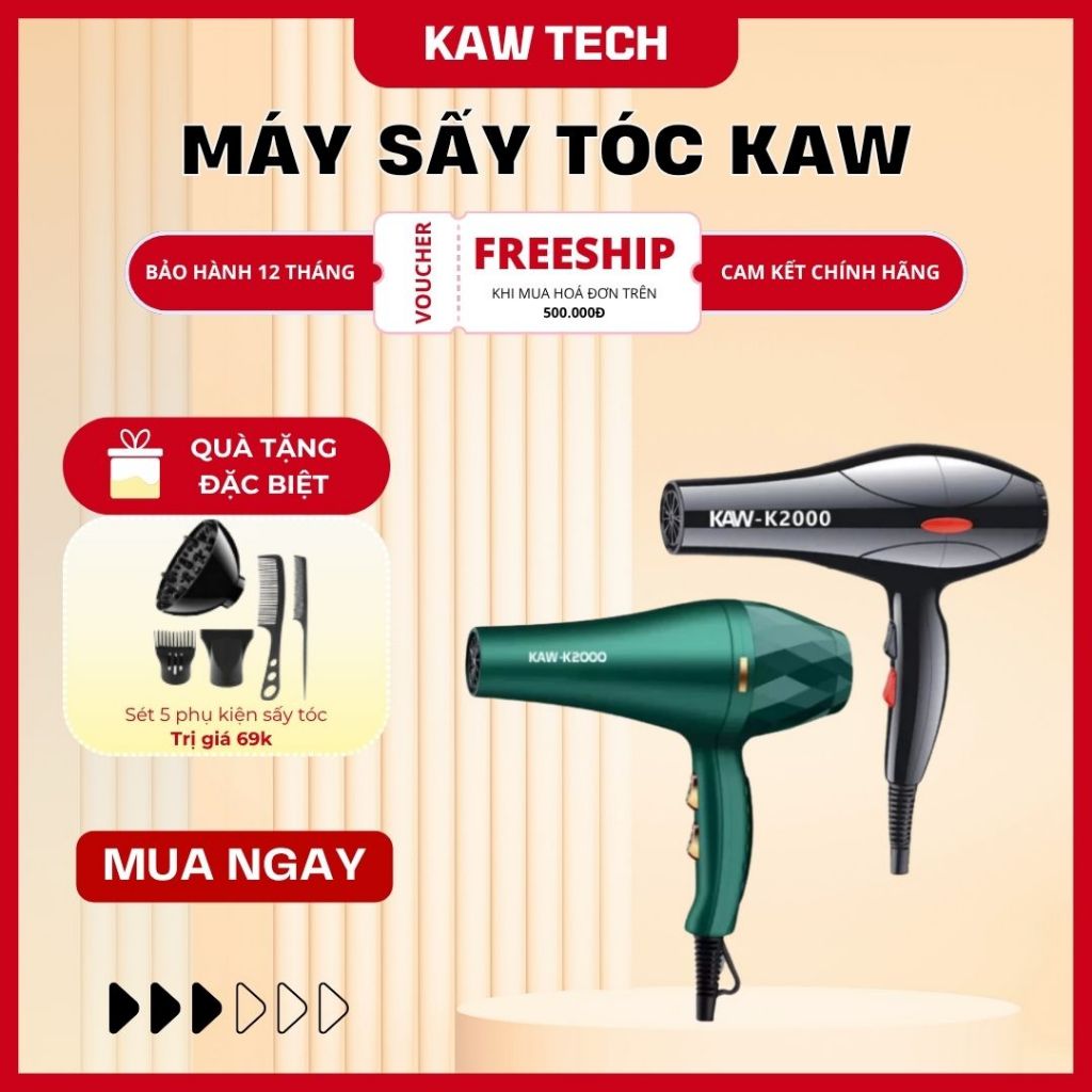 Máy Sấy Tóc KAW Công Suất 2000W, Chế Độ Sấy 2 Chiều, tạo kiểu tóc chuyên nghiệp tặng kèm bộ 5 phụ kiện