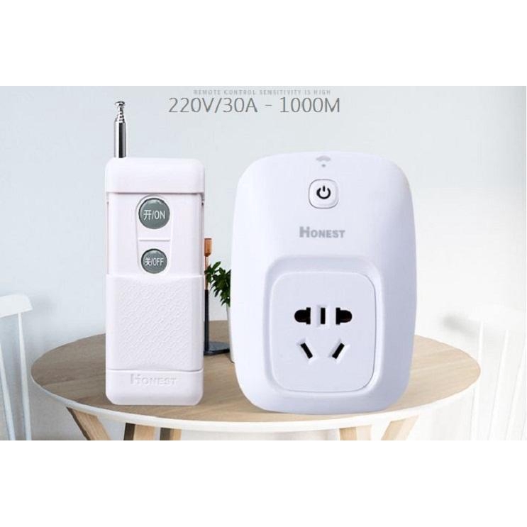 Ổ cắm điều khiển từ xa 1 km công suất lớn Honest 30A/220V- có CHỨC NĂNG HỌC LỆNH, CÔNG TẮC ĐIỀU KHIỂN TỪ XA bật tắt bơm