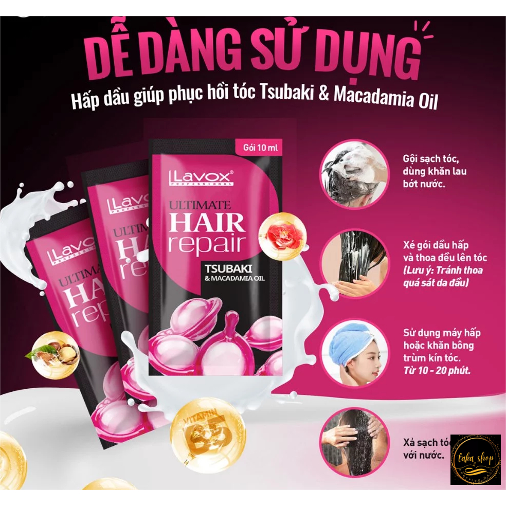 Combo Dây 12 gói Hấp Dầu Phục Hồi Tóc Lavox Collagen Vitamin B5 Stubaki & Macadamia Oil 10ml/goi