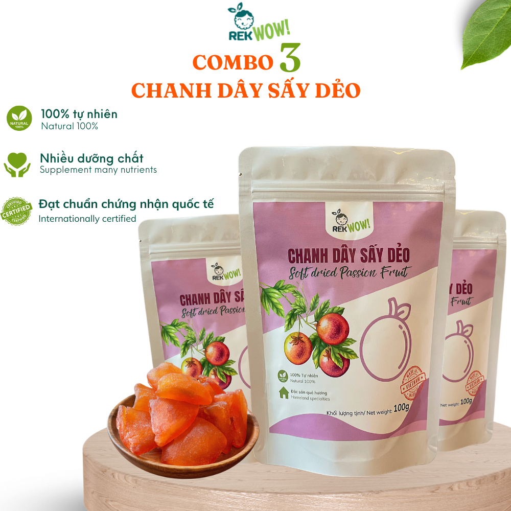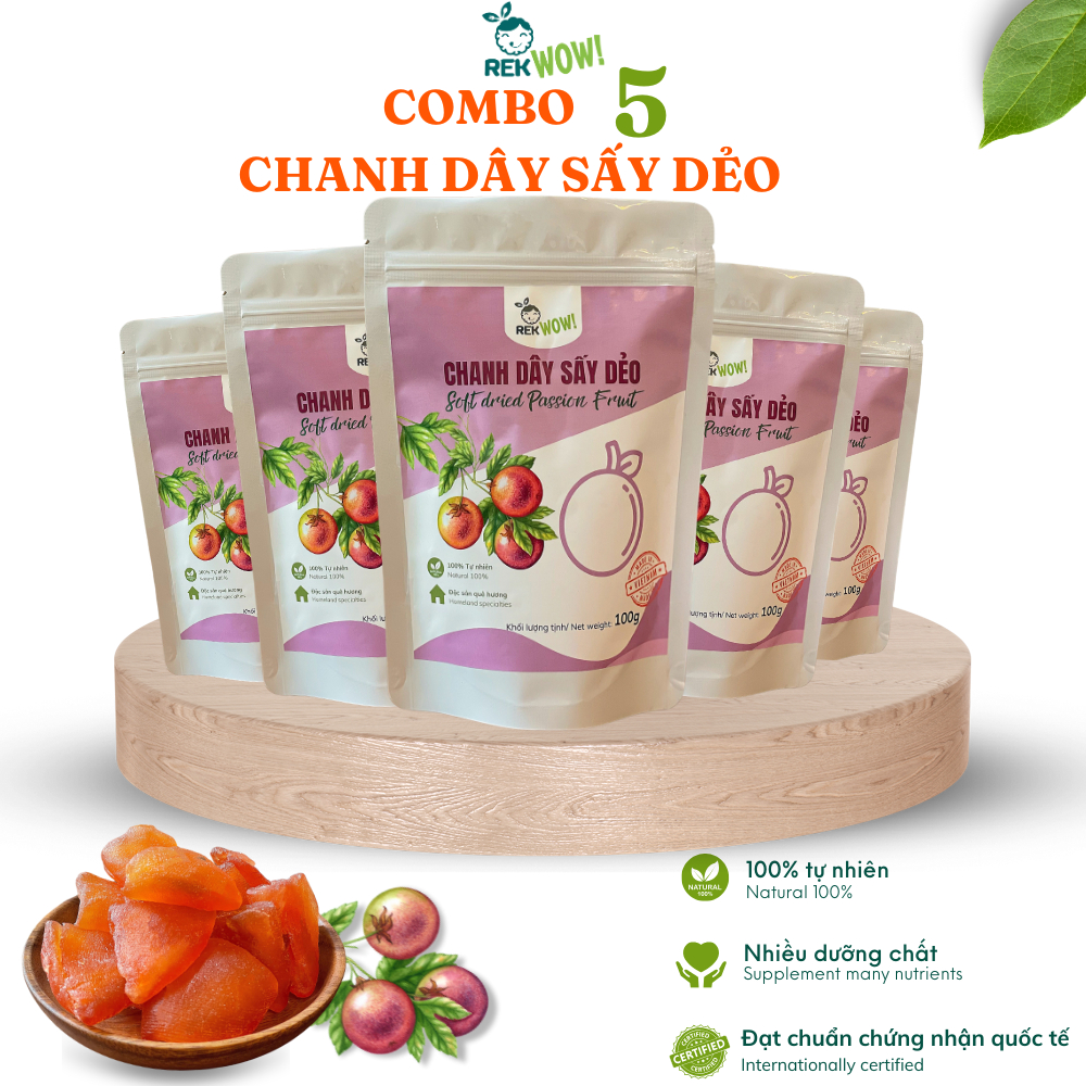 Chanh Dây Sấy Dẻo REK WOW - túi 100g - Ăn vặt tốt cho sức khỏe - Trái cây sấy dẻo