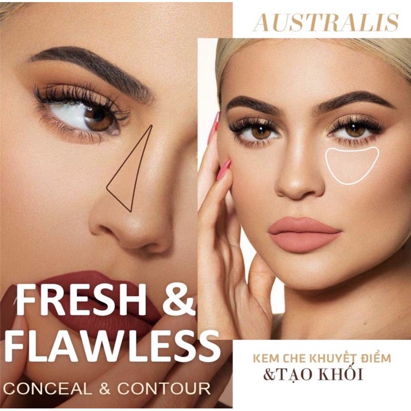 Che Khuyết Điểm Và Tạo Khối Giúp Che Mọi Khuyết Điểm Trên Da, Chính Hãng Australis -Fresh & Flawless Concealer Australis