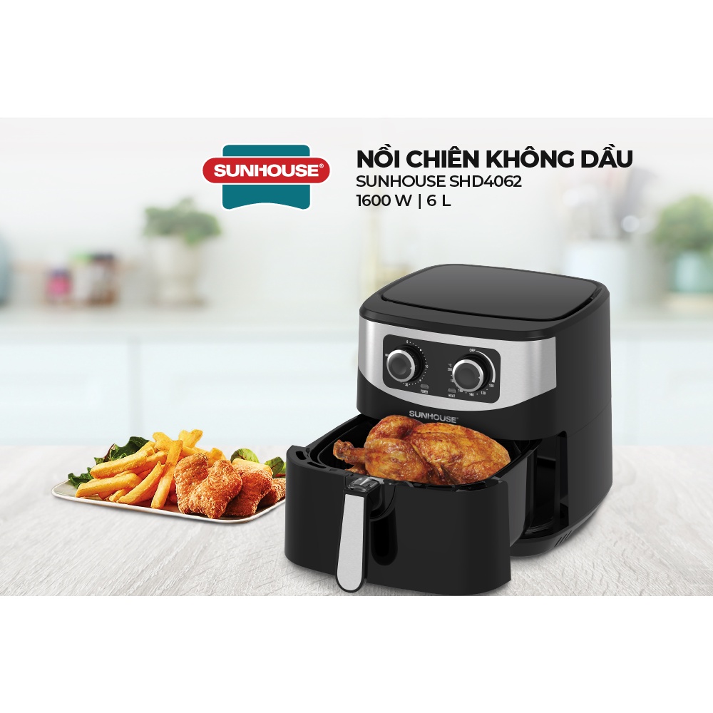 Nồi Chiên Không Dầu SUNHOUSE SHD4062, Công nghệ Rapid Air , Giảm đến 80% lượng chất béo, Dung tích lớn 6L