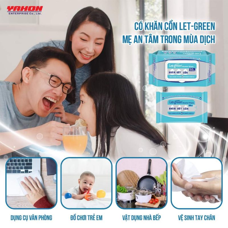[ Giá Sỉ ] Combo 12 KHĂN ƯỚT CỒN Let-green ( 50miếng )