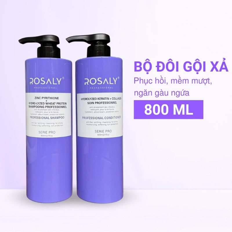 [Mẫu mới ]Dầu gội dầu xả Rosaly Professional phục hồi mềm mượt, ngăn gàu, dầu, gãy rụng 800ml( Hàng chính hãng)