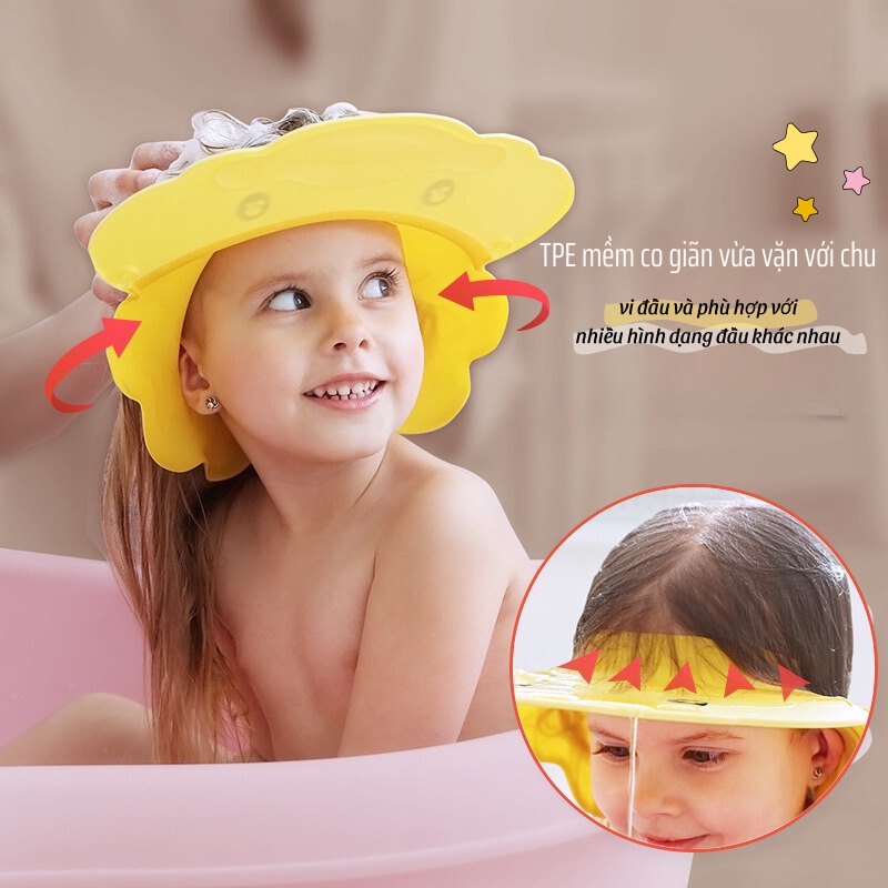 Mũ gội đầu vịt con cho bé C&M BABY nón tắm gội đầu bé điều chỉnh kích thước
