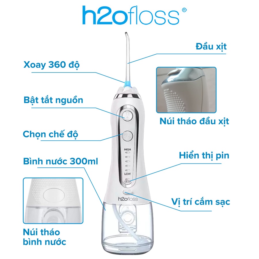 Máy tăm nước cao cấp H2OFLOSS HF-6P Thế Hệ Mới | Hàng Chính Hãng - Chăm Sóc Răng Miệng Hiệu Quả