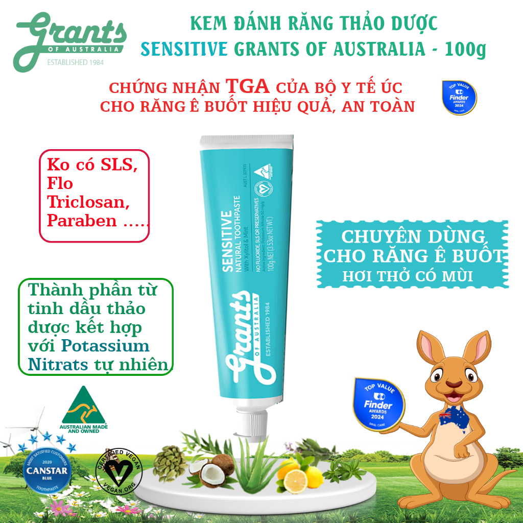 Kem đánh răng thảo dược hữu cơ Grants -110g, Ngừa viêm nướu,ê buốt chảy máu chân răng -KOL