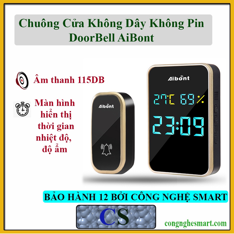 Chuông Cửa Không Dây Kh ông Pin Aibont T295 DoorBell Hiển Thị Thời Gian và Nhiệt Độ