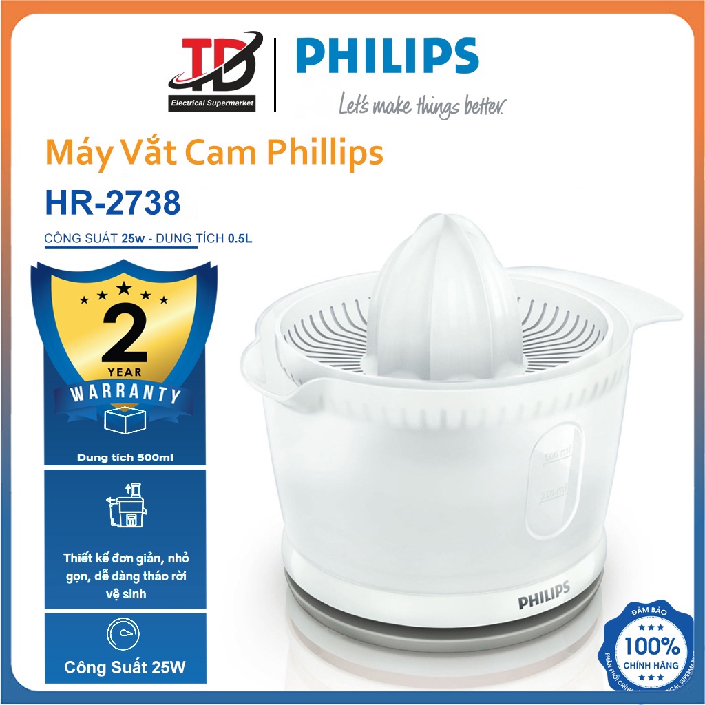 Máy Vắt Cam Philips HR2738, 25W - 0.5Lit, Hàng Chính Hãng