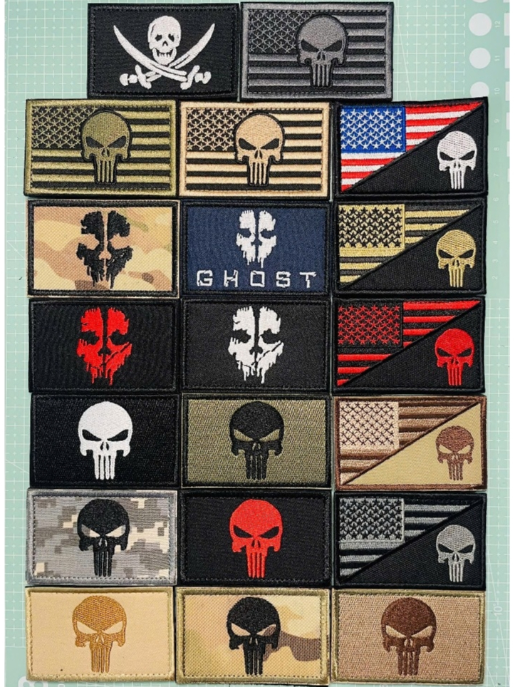 [Hỏa Tốc TPHCM] Patch_Velcro dán in Đầu Lâu Punisher thêu tinh xảo,có mặt gai dán lên quần áo balo