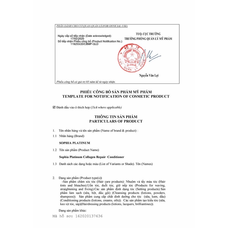 Dầu gội xả collagen phục hồi tóc Sophia Platinum Hàn Quốc 500ml