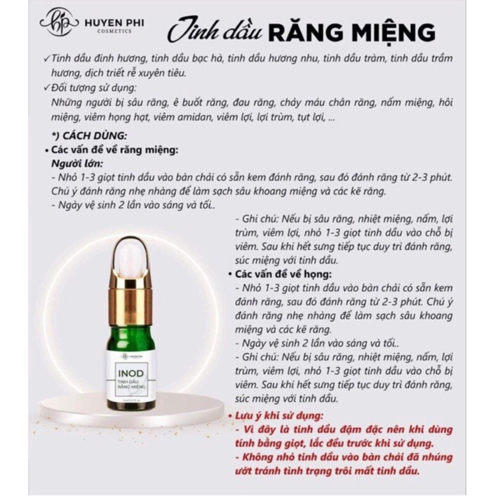 Tinh Dầu Răng Miệng INOD Huyền Phi khử hôi miệng ê buốt sâu răng 10ml
