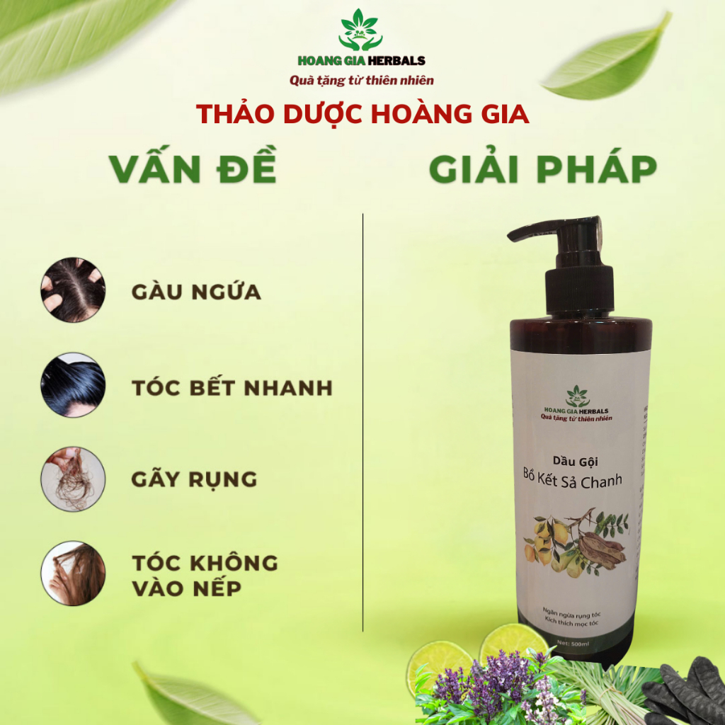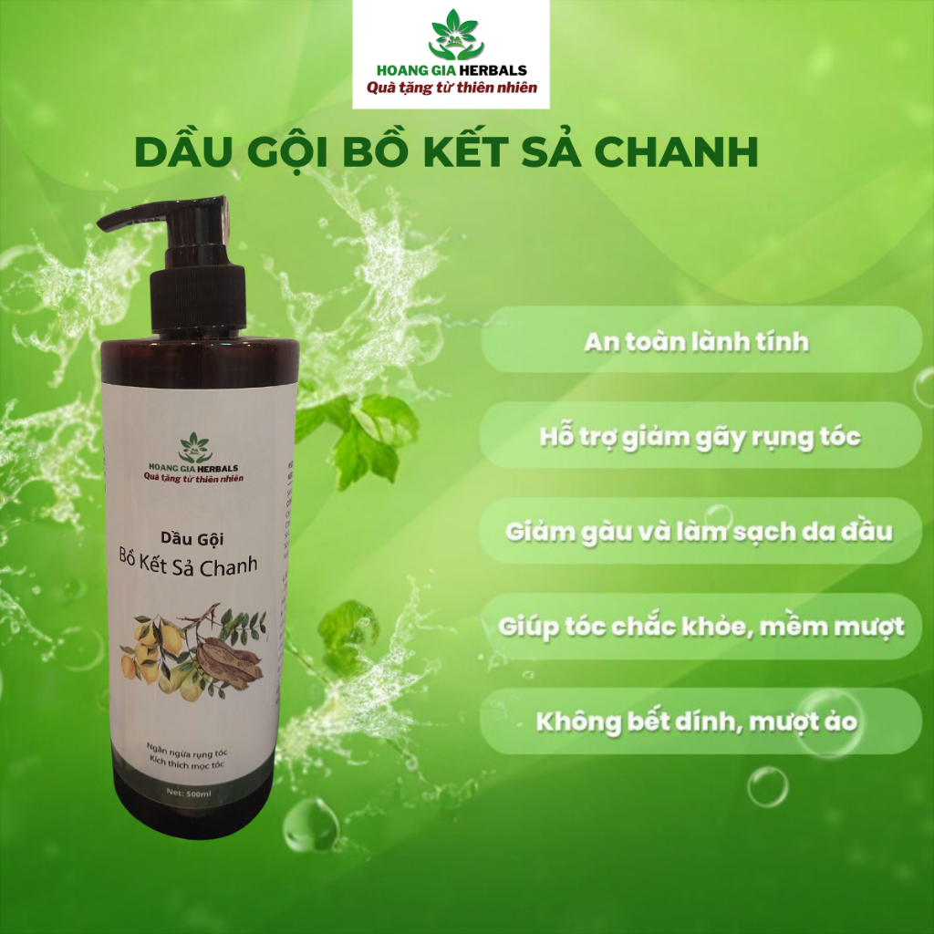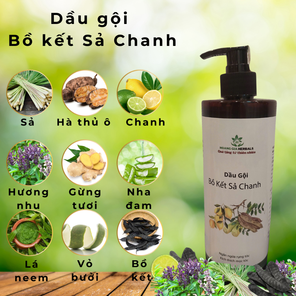 Dầu gội bồ kết sả chanh thuần chay organic giảm gãy rụng, giảm gàu ngứa, kích thích mọc tóc 500ML