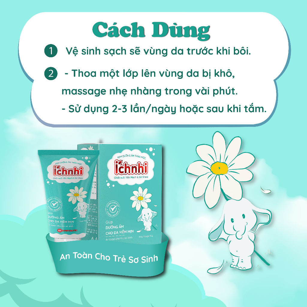 Kem bôi trẻ em thảo dược Ích Nhi dưỡng ẩm, giảm hăm tã, mẩn ngứa, chàm sữa, côn trùng cắn, muỗi đốt, an toàn bé sơ sinh