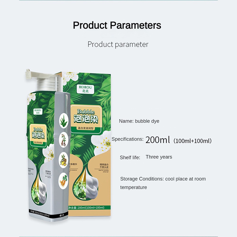 Thuốc nhuộm tóc Beirou Bubble Natural hương thực vật Silk không gây hại không làm tổn thương da đầu 200ml 6 màu DIRE