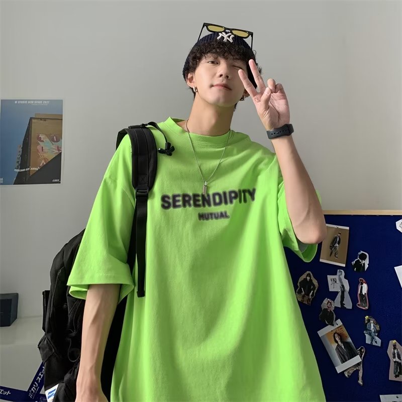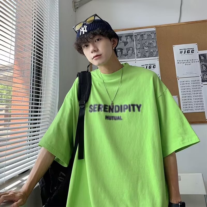 Áo Thun Tay Ngắn Cổ Tròn In Chữ Màu Xanh Lá Dạ Quang Phong Cách Mỹ Thời Trang Mùa Hè Cho Nam Và Nữ Size M-5XL