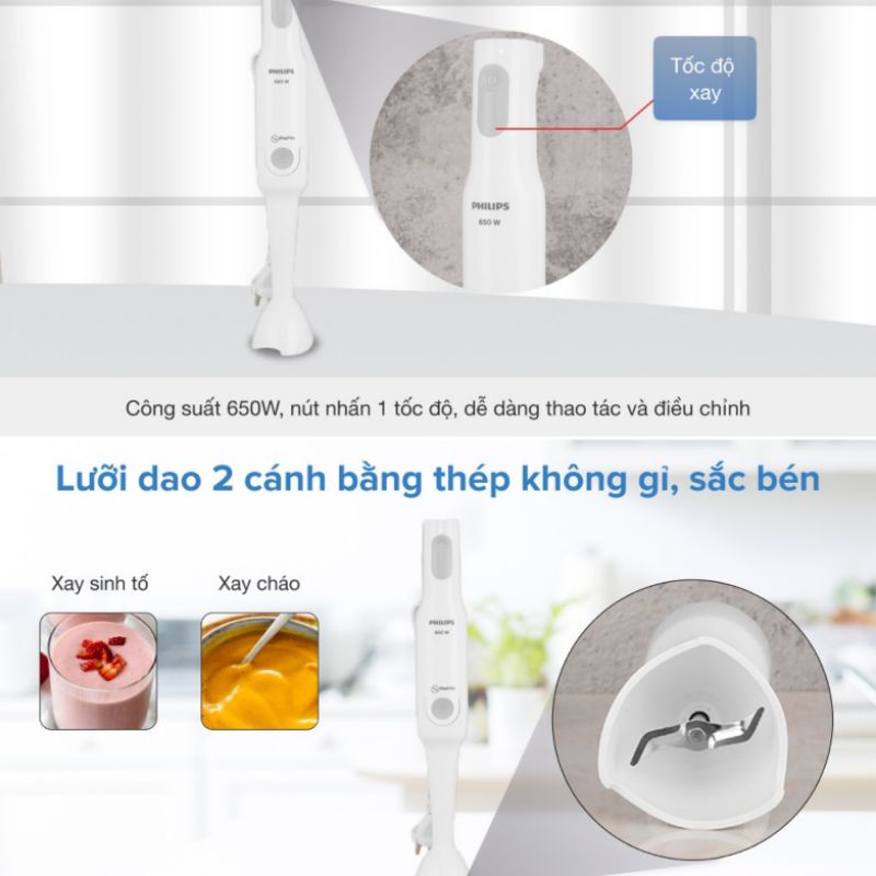 Máy Xay Sinh Tố Cầm Tay Philips HR2531/00 - Công Nghệ Xay Promix 650W - Bảo Hành Chính Hãng