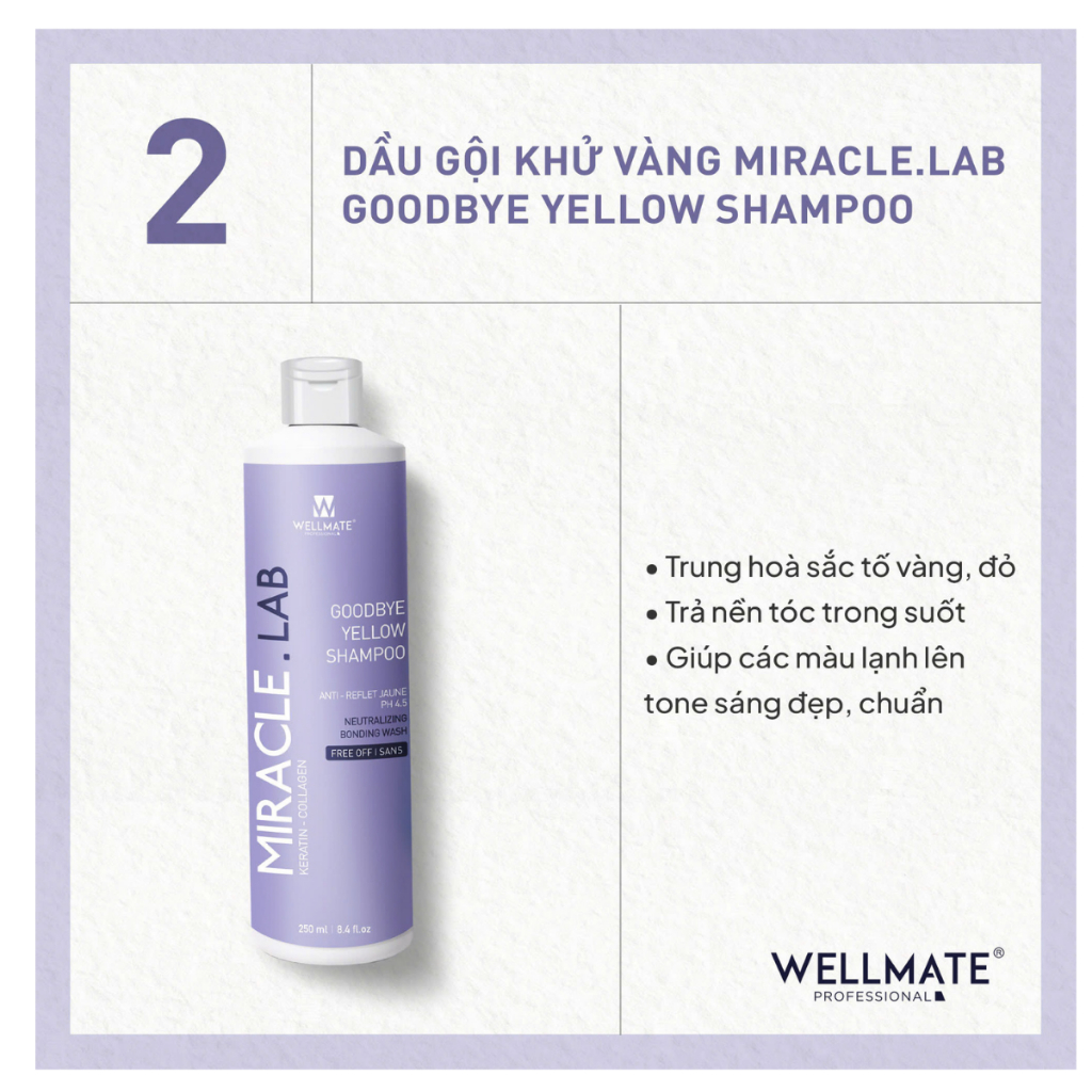 Dầu gội tím khử vàng giữ màu cho tóc tẩy MIRACLE. LAB GOODBYE YELLOW SHAMPOO WELMATE 250ml