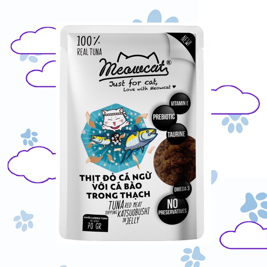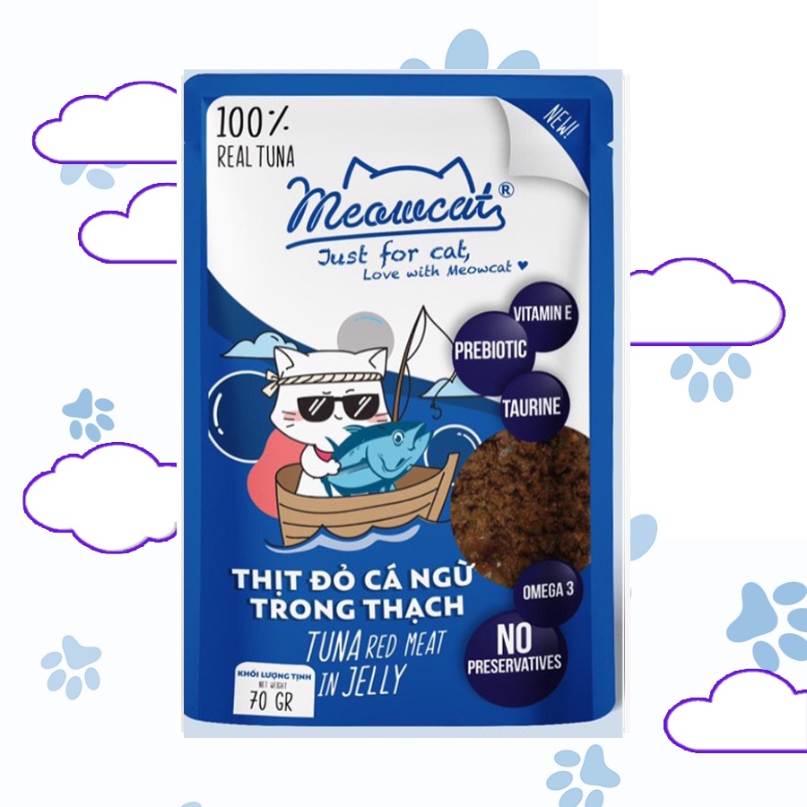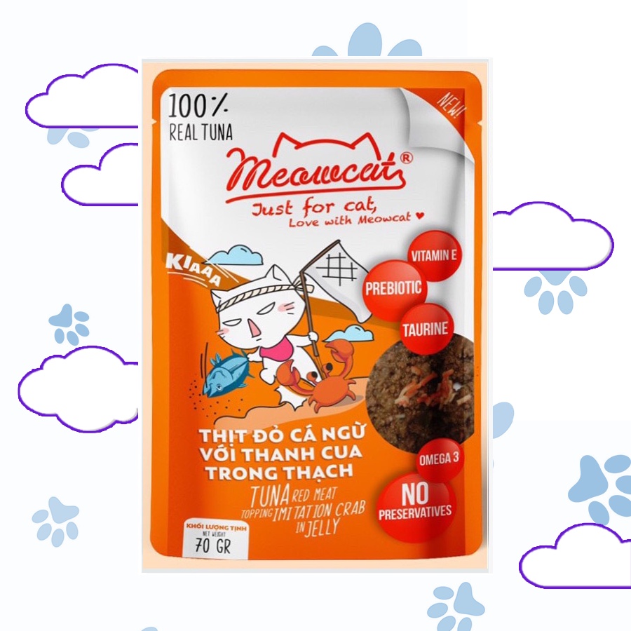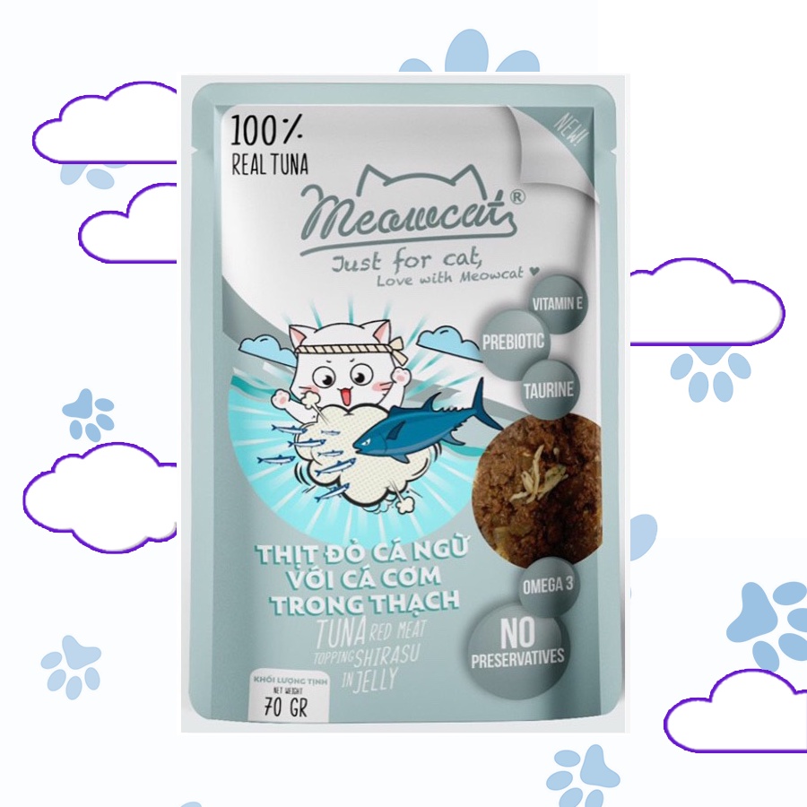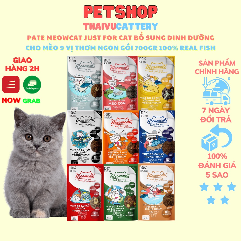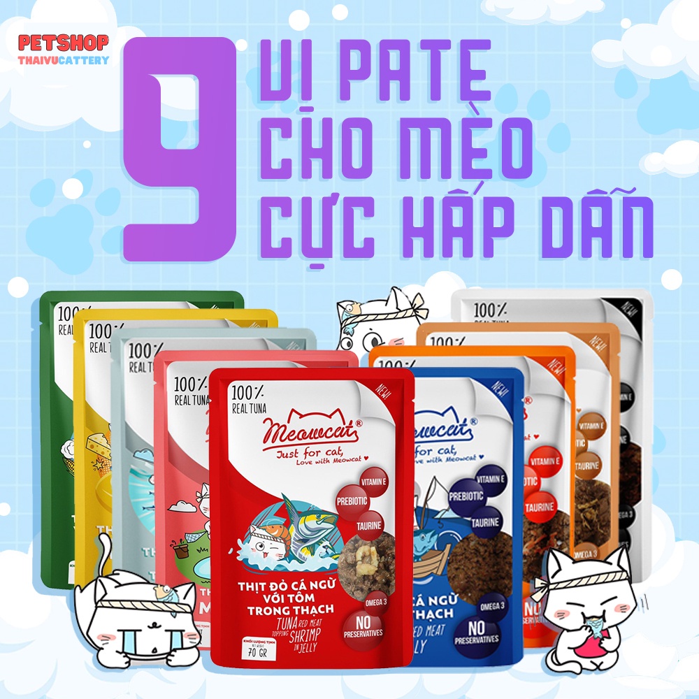 Pate Meowcat Just For Cat bổ sung dinh dưỡng cho mèo với 9 vị thơm ngon gói 70Gr cá thật 100%
