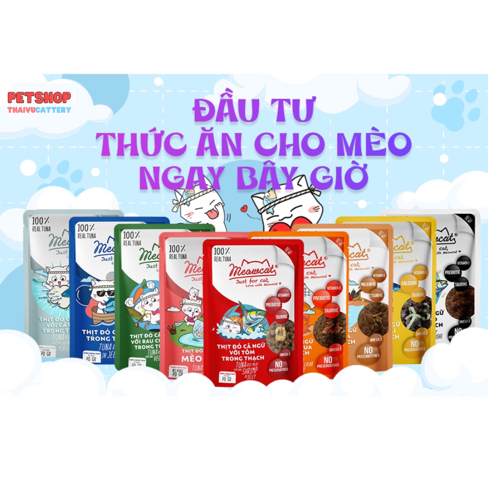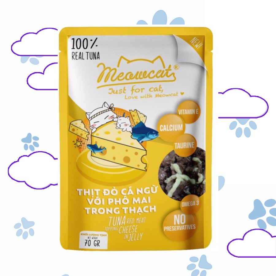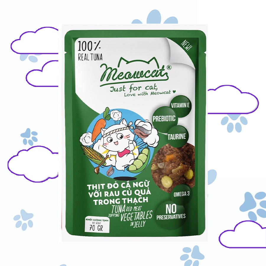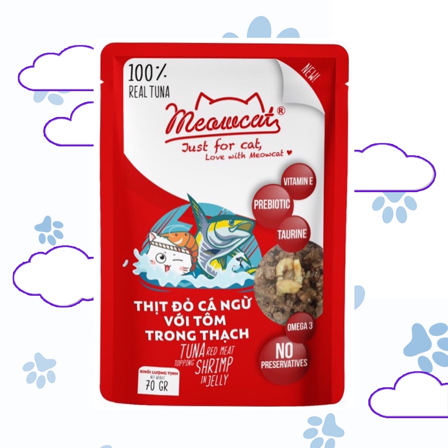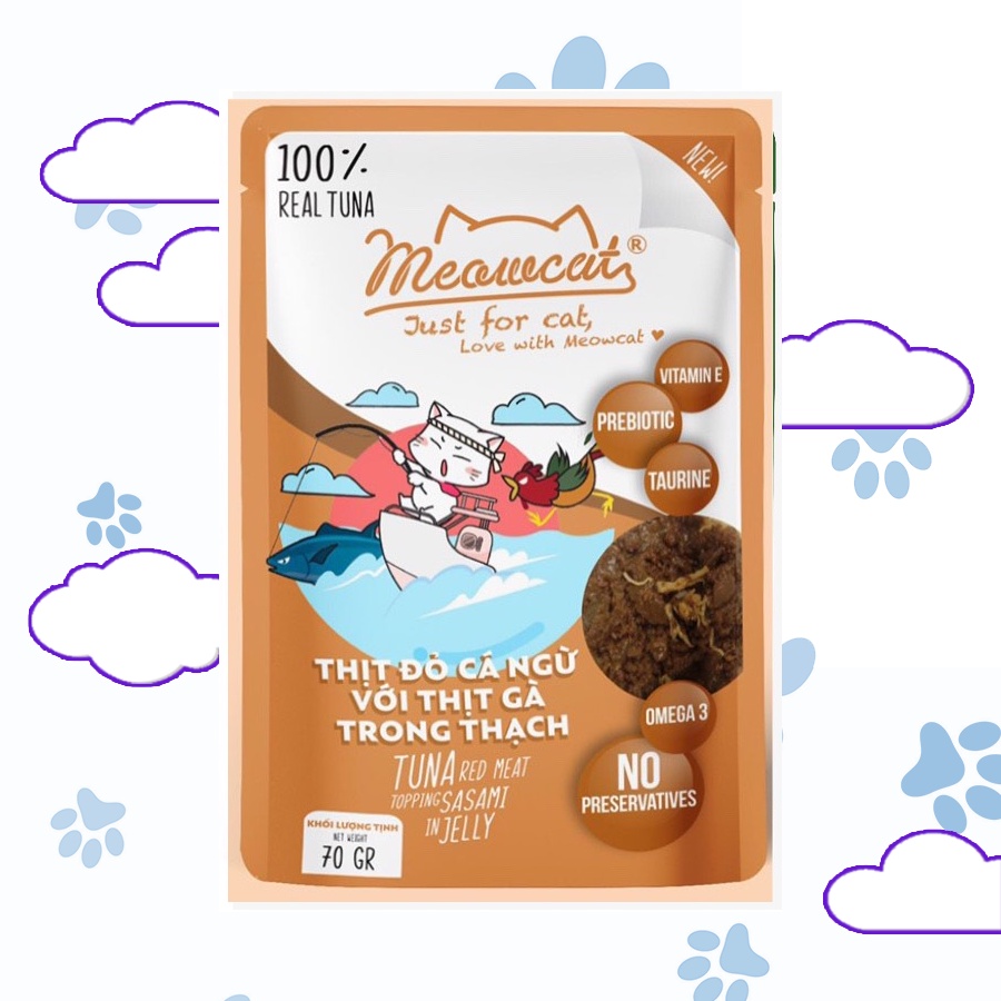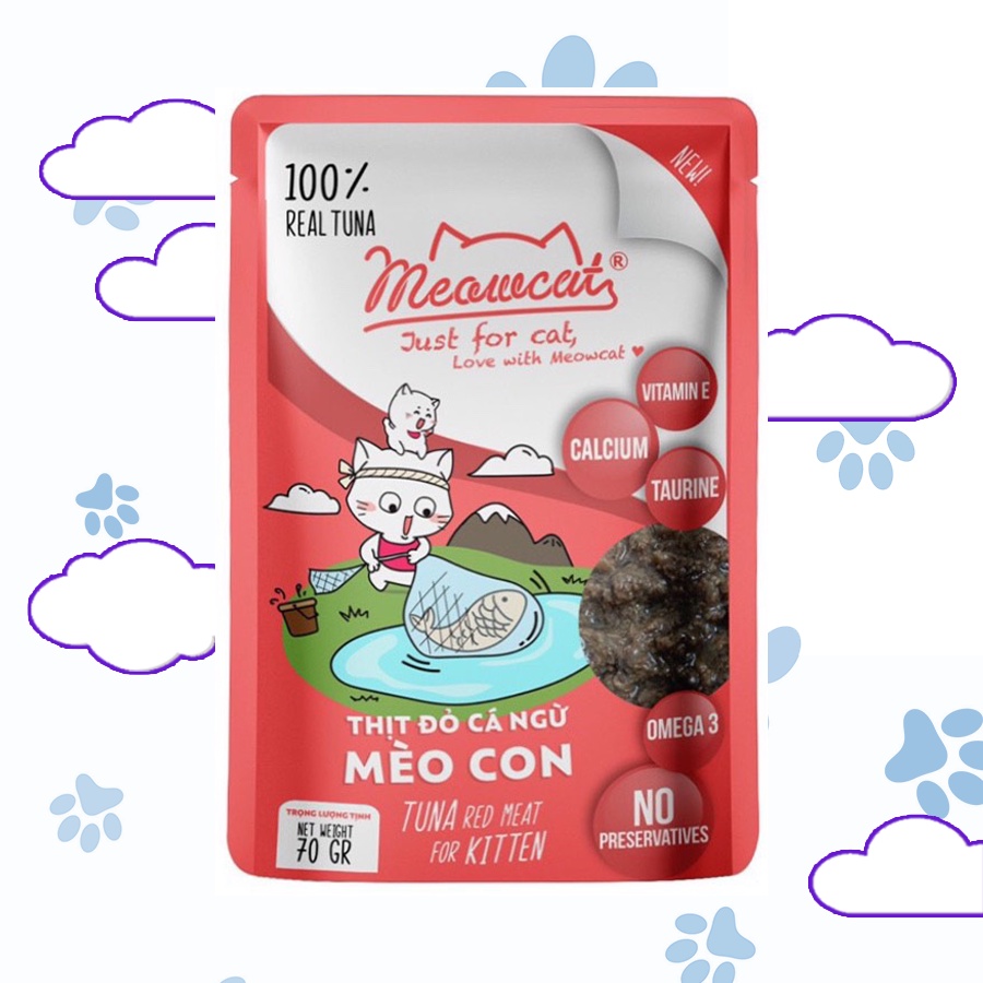 Pate Meowcat Just For Cat bổ sung dinh dưỡng cho mèo với 9 vị thơm ngon gói 70Gr cá thật 100%