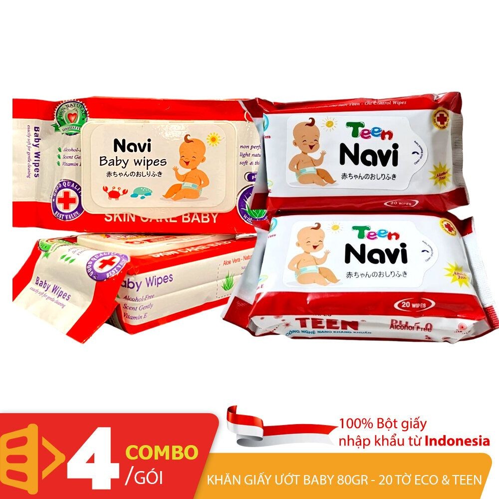 Combo 4 khăn ướt đỏ Baby Navi Eco Teen nhập khẩu Indonesia 80gr
