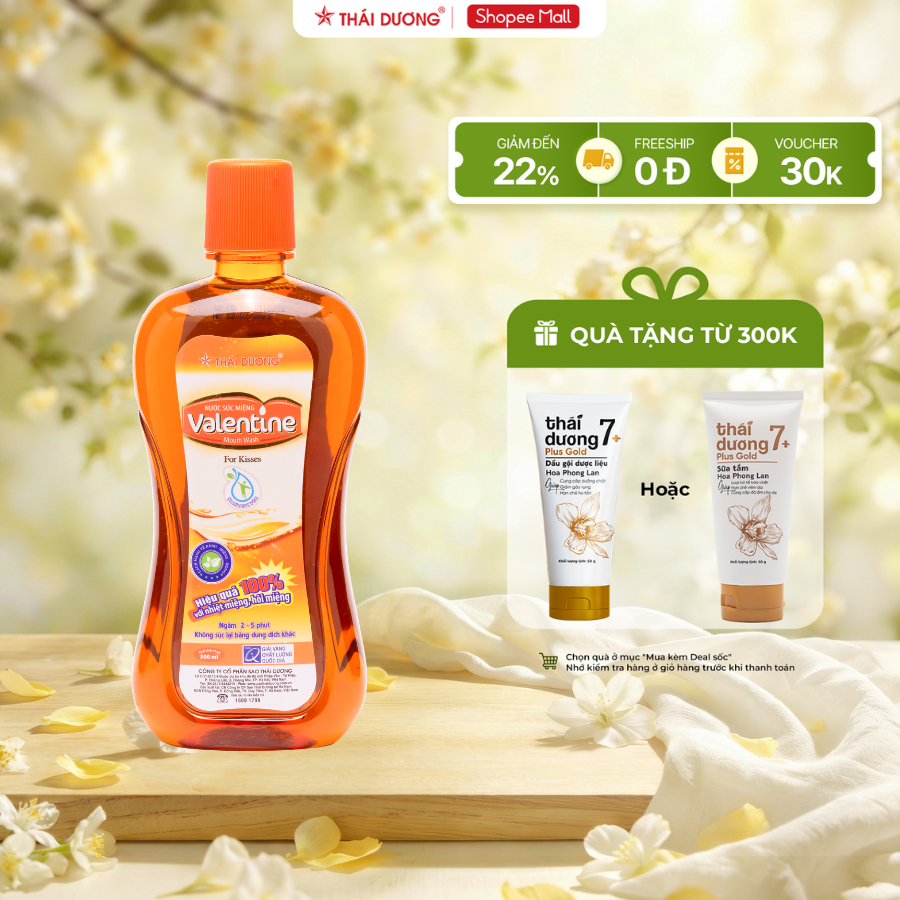 Nước súc miệng Valentine ngăn ngừa nhiệt miệng, hôi miệng, sâu răng, 500ml - Sao Thái Dương 500ml