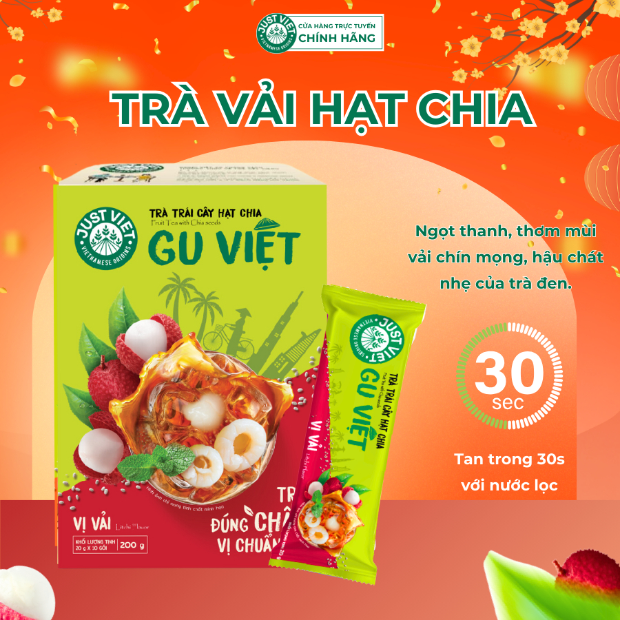 Trà Trái Cây Hạt Chia - Vị Vải - Tiện Lợi Thơm Ngon - HỘP 10 GÓI x 20g