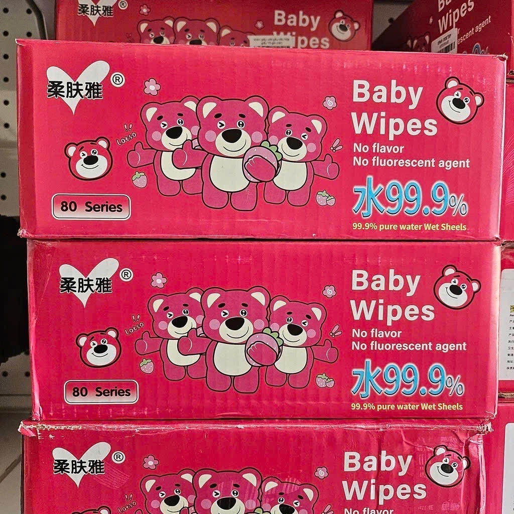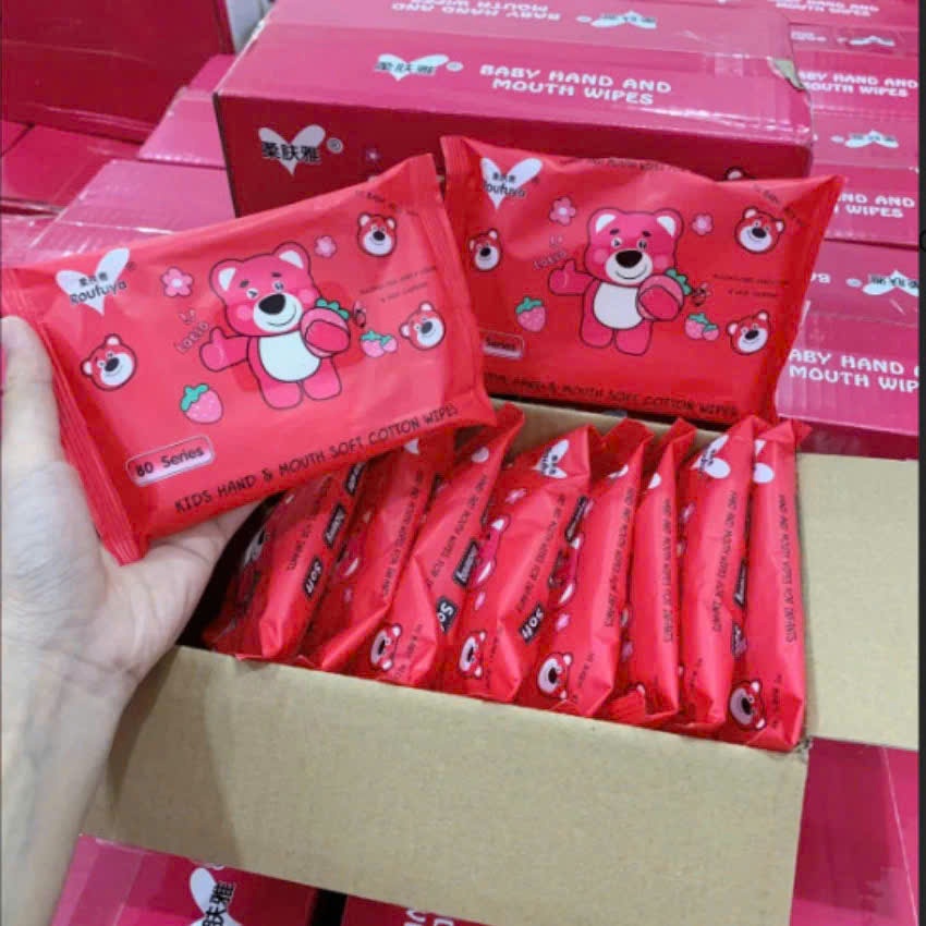 *Mẫu mới* Thùng 10 gói khăn ướt cao cấp gấu rose baby wipes - an toàn, tiện dụng