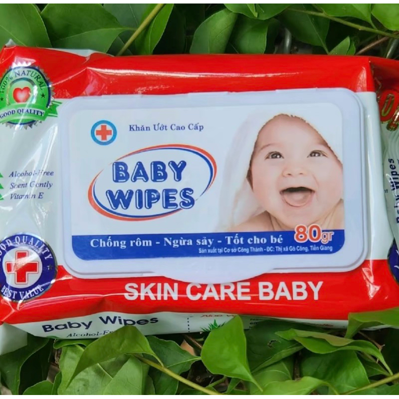Combo 10 gói 80g khăn ướt Baby Wipes không mùi cho bé - Thương hiệu uy tín