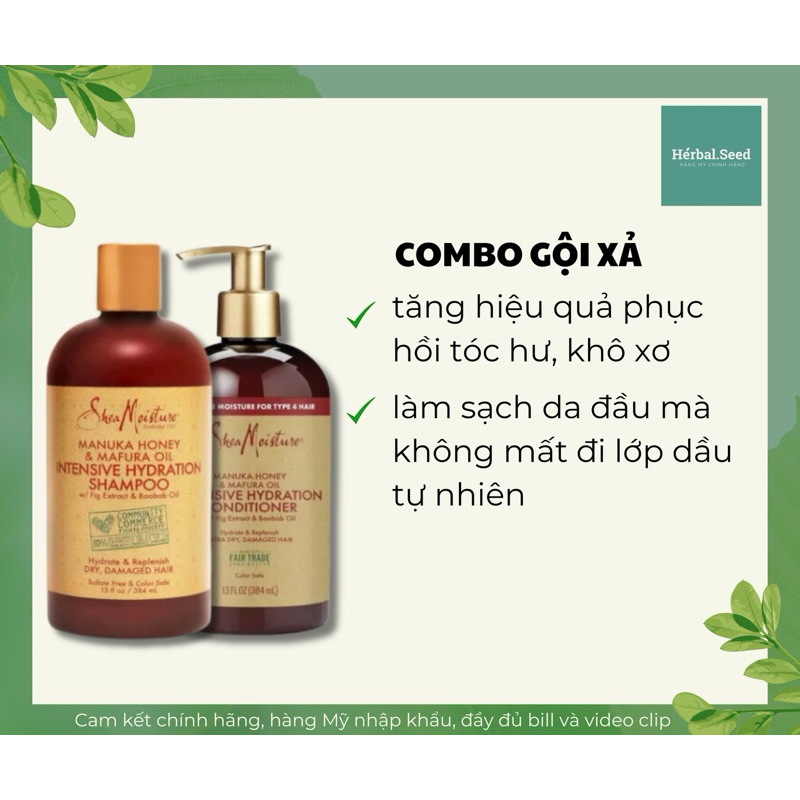 Bộ dầu gội xả Shea Moisture MANUKA HONEY dành cho tóc khô xơ gãy rụng chính hãng Mỹ