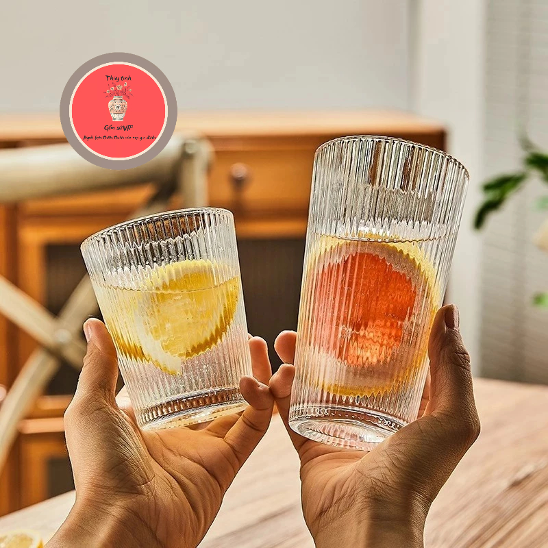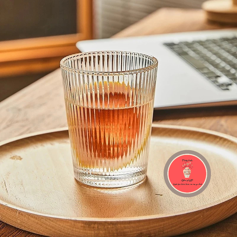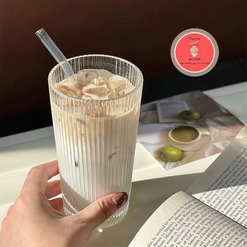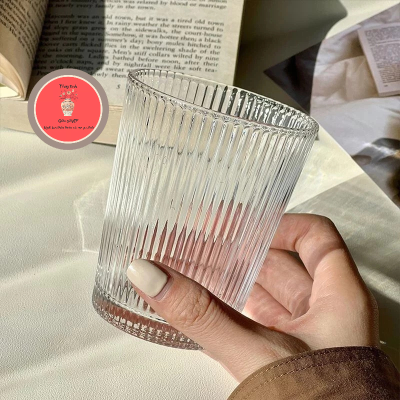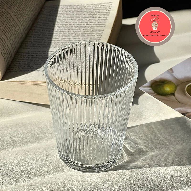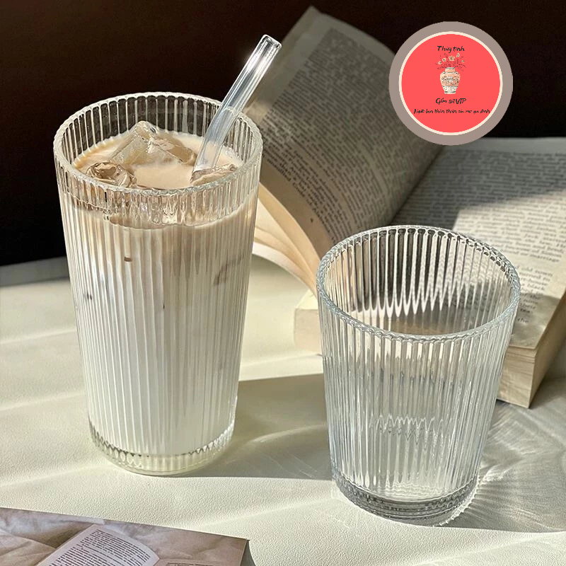 Cốc thủy tinh uống cafe họa tiết sọc dọc - Ly thủy tinh cao cấp dung tích 350ml