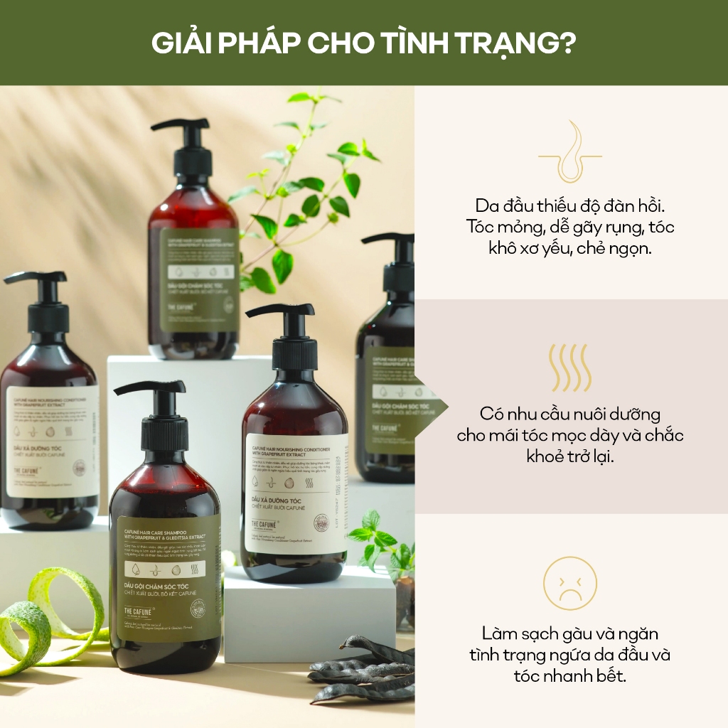 Combo Dầu Gội Xả 450ml, Nước Dưỡng Tóc Bưởi Th Cafuné 150ml, Dưỡng Tóc Chắc Khoẻ, Giảm Gãy Rụng