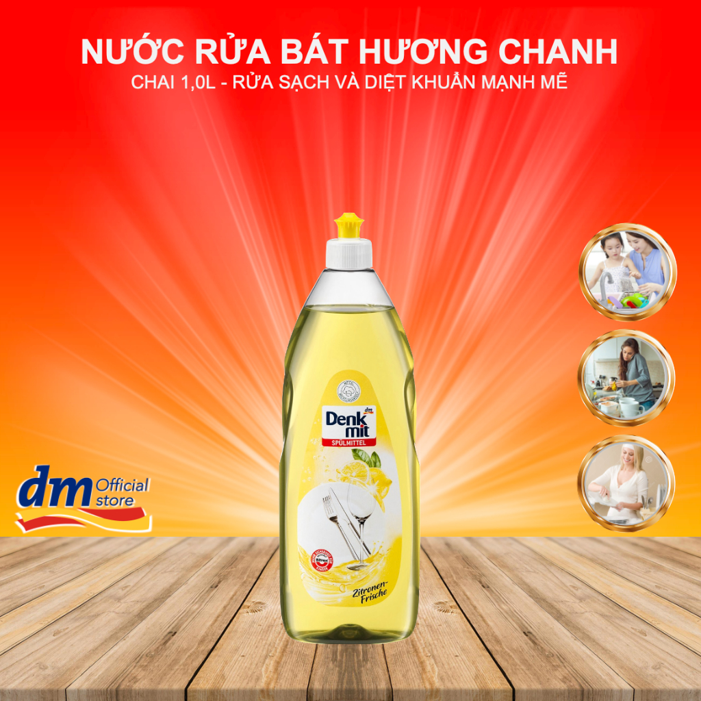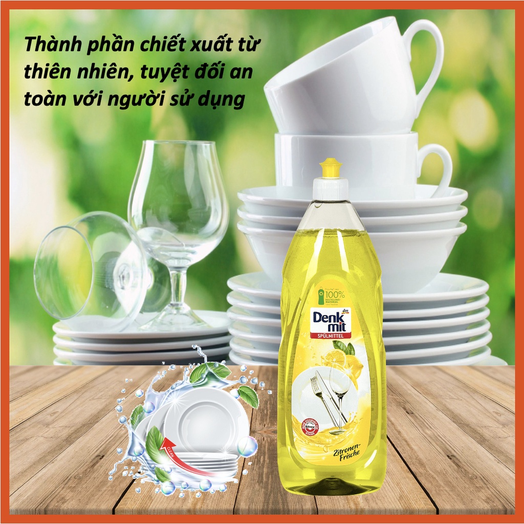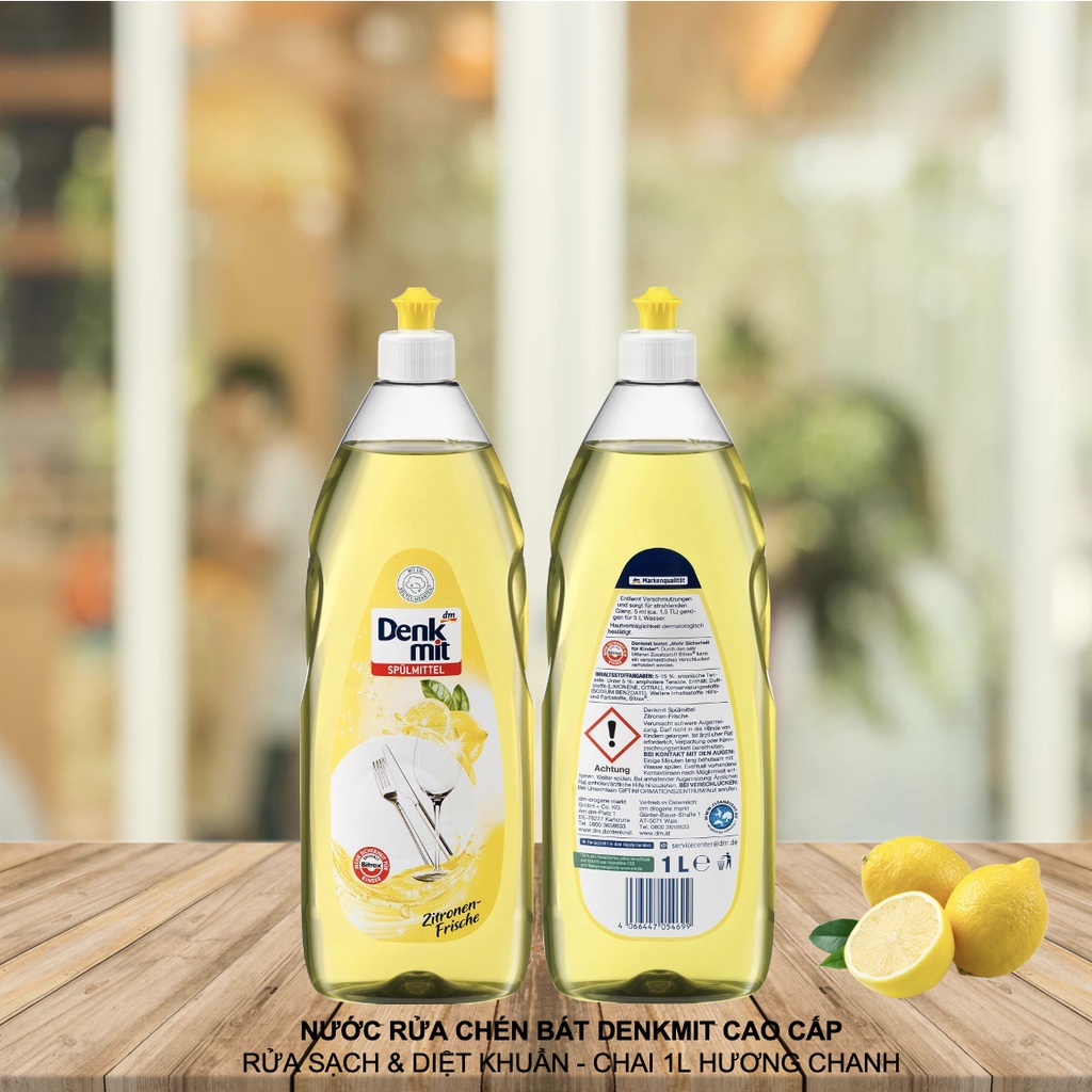 Nước rửa chén bát Denkmit nhập khẩu Đức chai 1 lít hương Chanh thích hợp cho da nhạy cảm