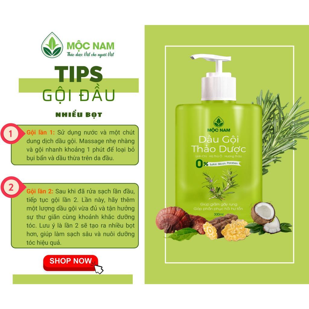 Dầu gội thảo dược Mộc Nam - Ngăn ngừa rụng tóc, phục hồi hư tổn - Không sulfate, không paraben