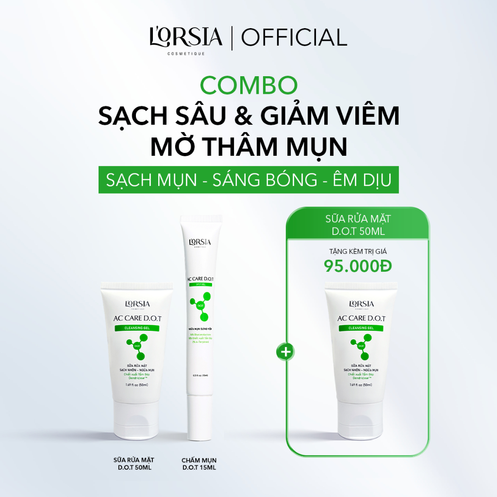 Combo chăm sóc da làm sạch sâu hỗ trợ giảm mụn sưng viêm : Sữa rửa mặt D.O.T 50ml, Gel chấm mụn D.O.T tặng SRM 50ML