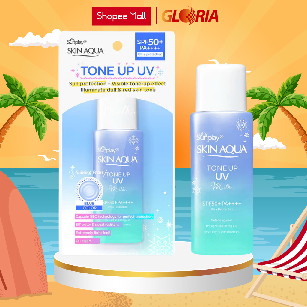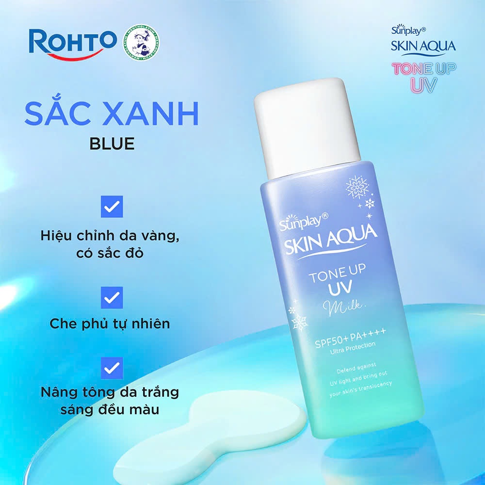 Sữa Chống Nắng Cho Da Vàng, Khuyết Điểm Đỏ Sunplay Skin Aqua Tone Up UV Milk BLUE SPF 50+ PA++++ 50g
