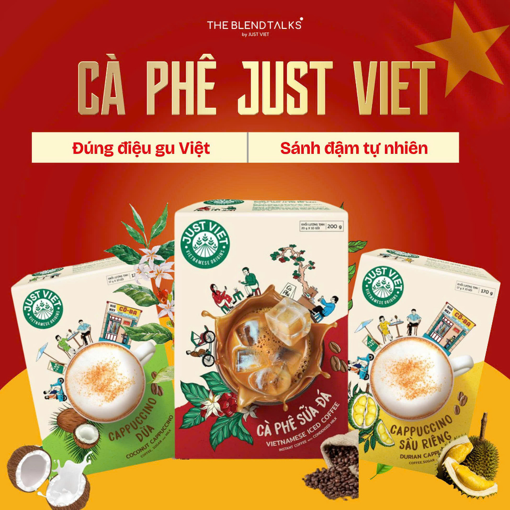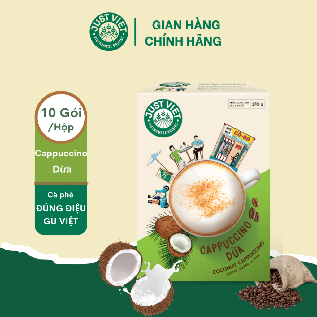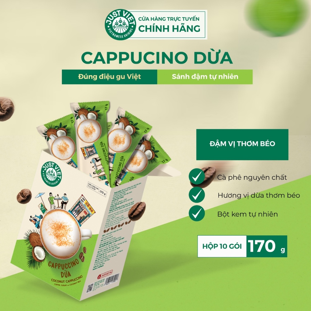 Cafe Capucino Dừa Just Việt - Đúng điệu gu Việt - Sánh quyện ngọt ngào (Hộp 10g x 20gr)