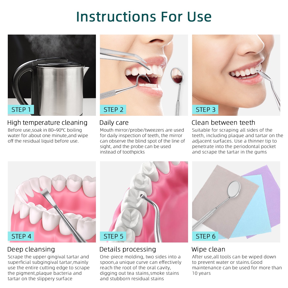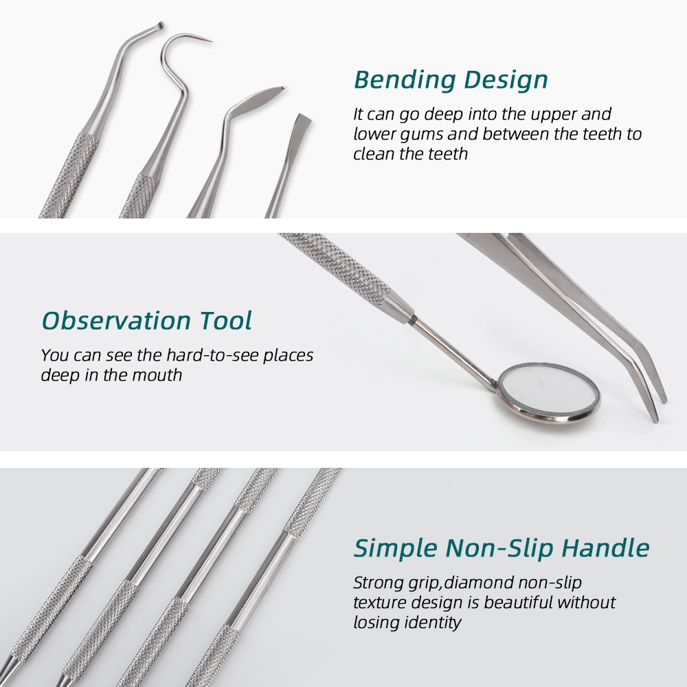 Bộ 3 / 4 / 6 Món Dụng Cụ Chăm Sóc Răng Miệng Bằng Thép Không Gỉ
