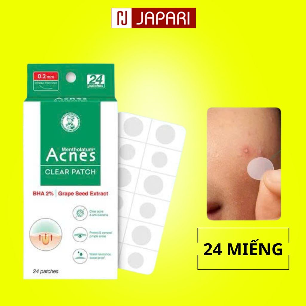 Miếng Dán Mụn Acnes Clear Patch 24 Miếng - Miếng Dán Mụn Giảm Sưng Viêm, Ngừa Thâm Chống Nước-Japari
