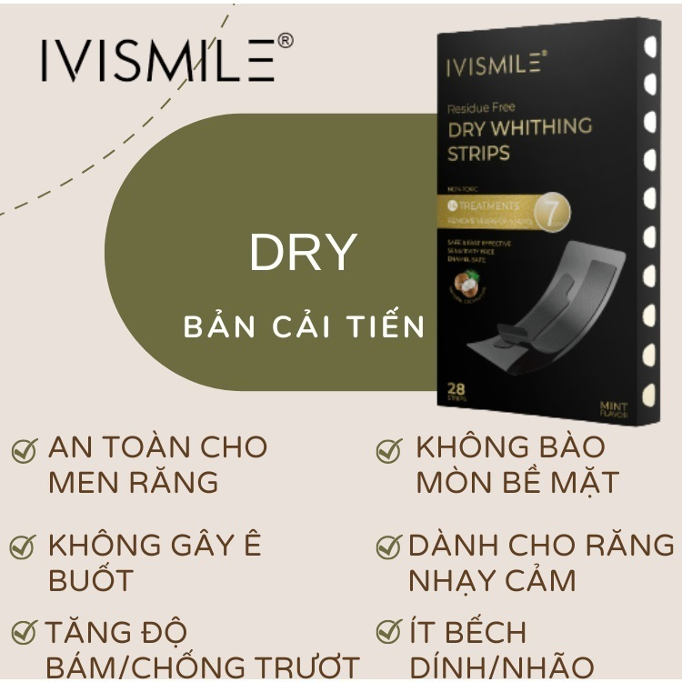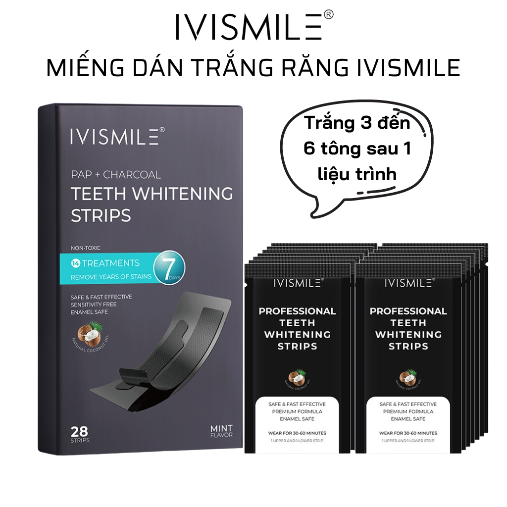 Miếng dán trắng răng Ivismlie Dry kết hợp than hoạt tính hỗ trợ cải thiện màu răng hiệu quả
