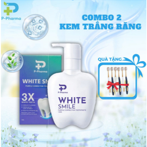Combo 2 chai Kem đánh răng White Smile P-Pharma làm sạch trắng răng tại nhà ngăn ngừa hôi miệng 140g
