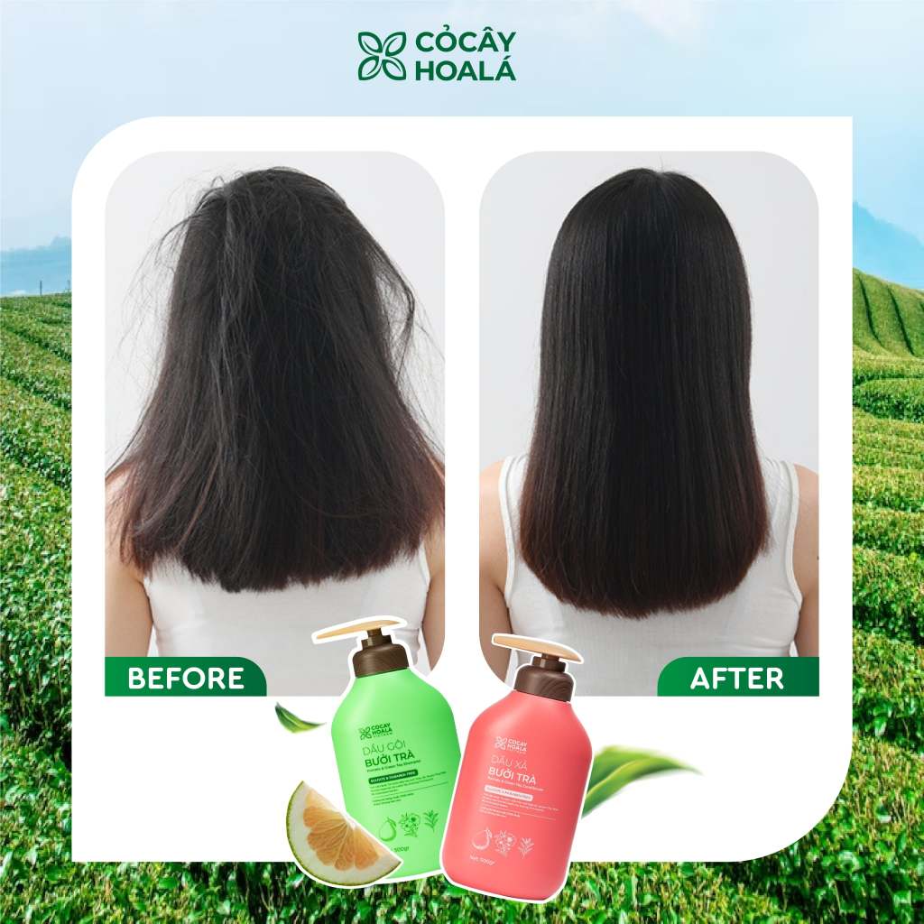 Bộ sản phầm dầu gội, xả Bưởi Trà CỎ CÂY HOA LÁ 500g - Trạm Organic