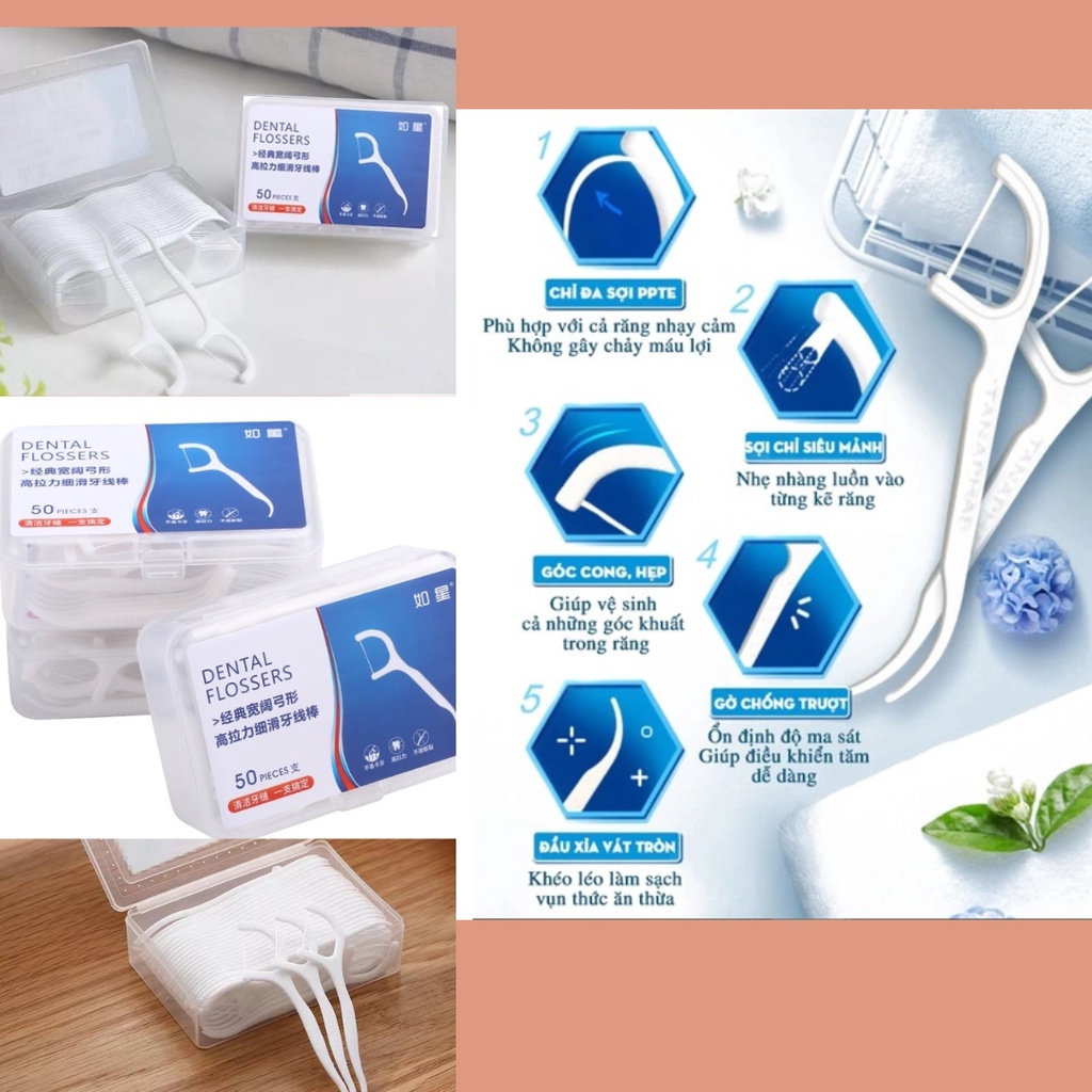 Tăm chỉ nha khoa Dental Flossers sợi chỉ mảnh hộp 50 chiếc