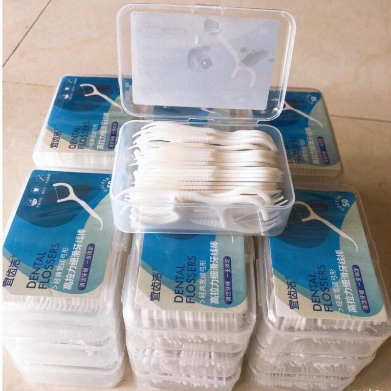 Hộp Tăm chỉ nha khoa Dental floss ( LOẠI ĐẸP) hộp 50 cây, sợ chỉ mảnh và chắc chắn